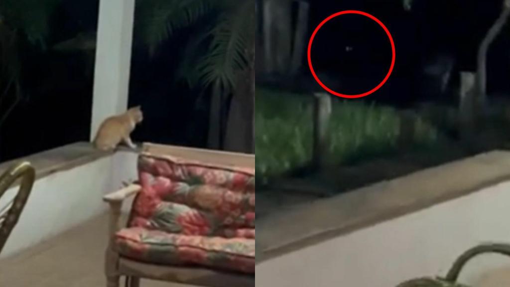 Ela gravou vídeos que mostram parte da ação do animal, mas, devido à baixa iluminação, as imagens não permitem identificar com clareza a espécie envolvida.
