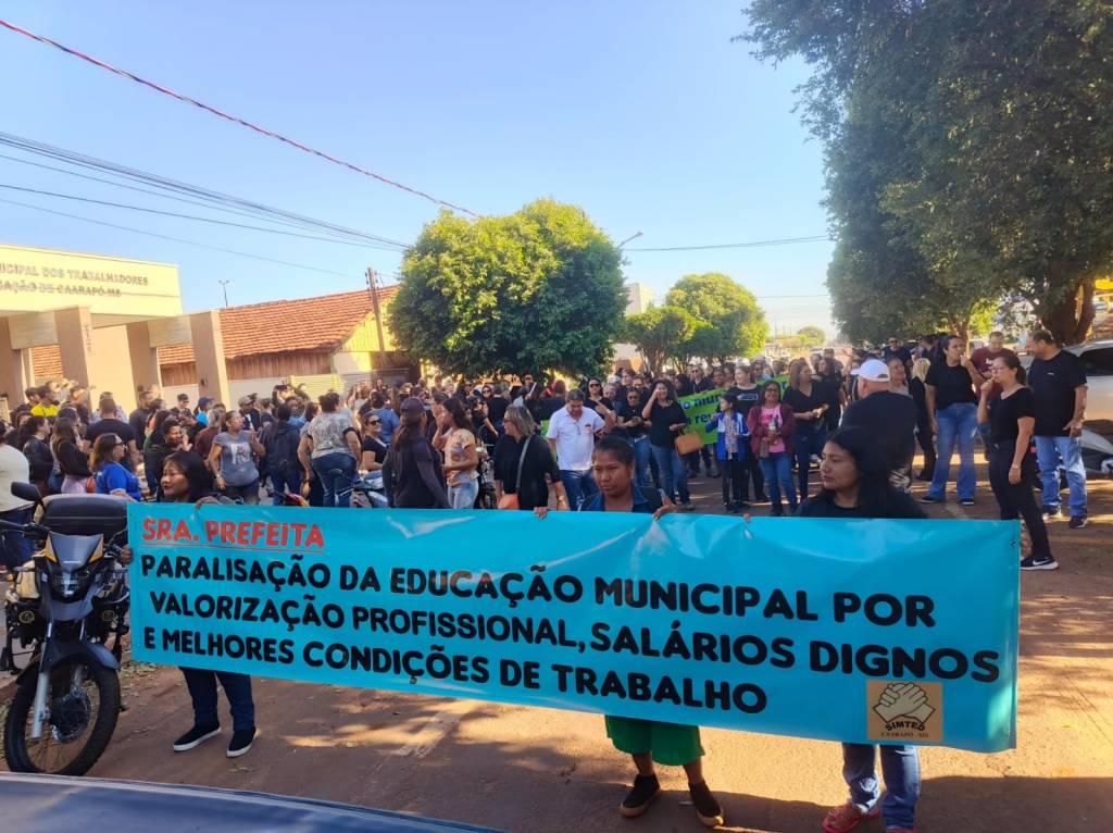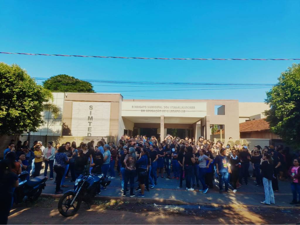 Na manhã desta quarta-feira, 14 de maio, profissionais da educação municipal de Caarapó promoveram uma paralisação com manifestação em frente à Prefeitura Municipal. A mobilização teve como principais pautas o reajuste salarial da categoria, a implantação do vale-alimentação e a cobrança por melhores condições de trabalho.