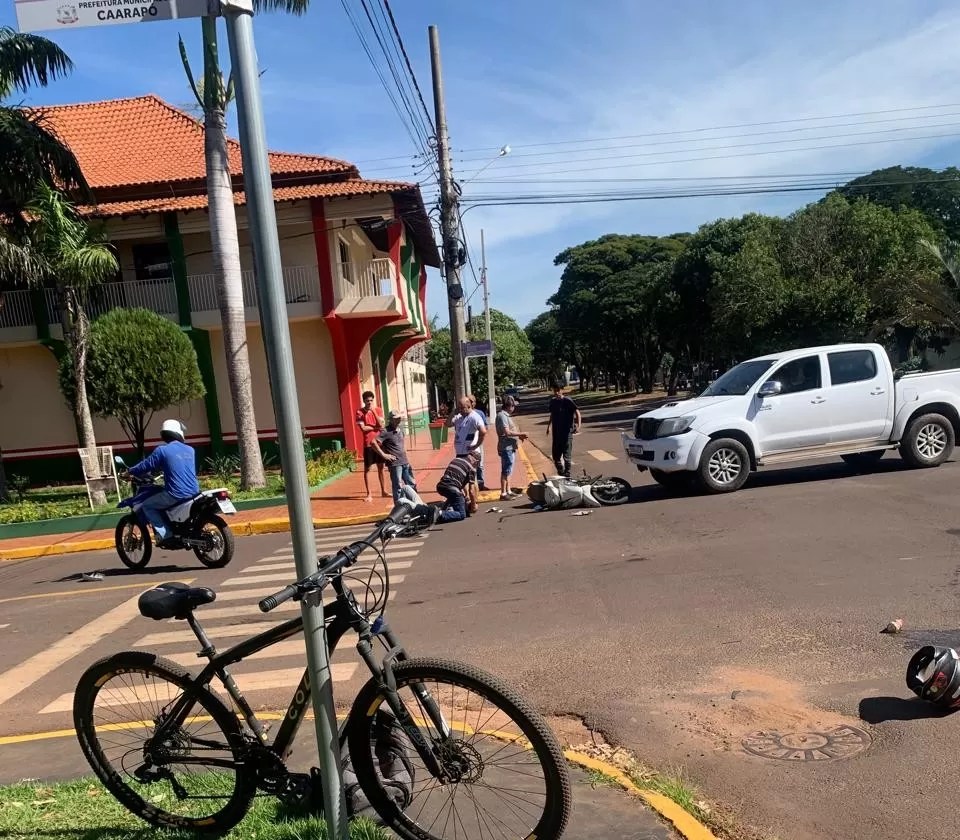 Um acidente de trânsito registrado na tarde desta sexta-feira (16) em Caarapó, no sul de Mato Grosso do Sul, deixou dois jovens feridos e chamou atenção para os riscos em cruzamentos urbanos com pouca sinalização. A colisão envolveu uma caminhonete Toyota Hilux e uma motocicleta Honda Biz e ocorreu no entroncamento entre as ruas Arcênio Cardoso e Euclides Serejo Batista, região central da cidade.