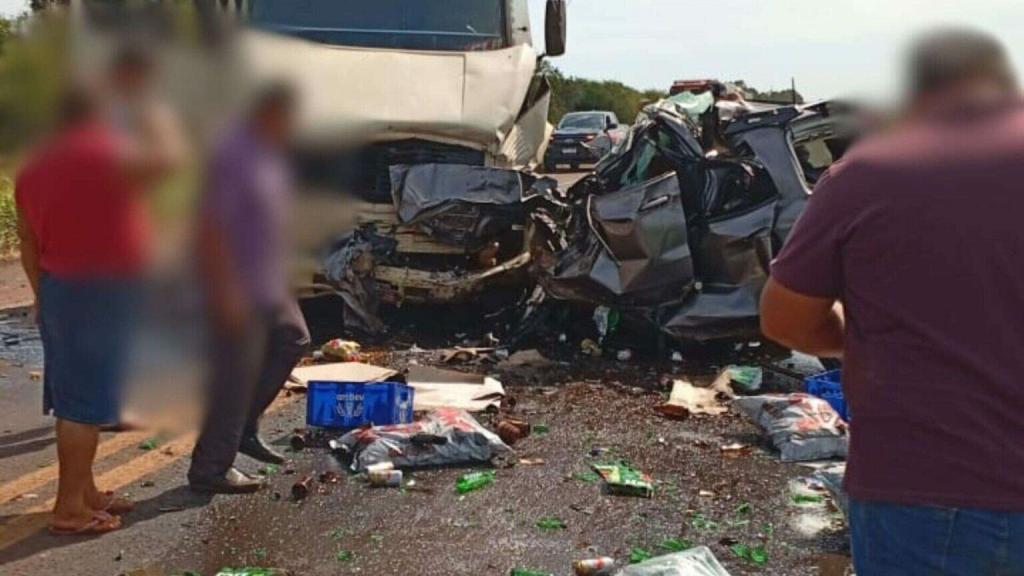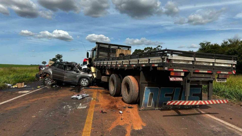 Um casal morreu em um acidente envolvendo um caminhão e um veículo Fiat Toro na BR-262, em Campo Grande, no início da tarde desta terça-feira (20).