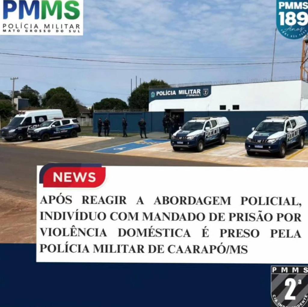 Na manhã desta quinta-feira (23), um indivíduo com mandado de prisão em aberto e histórico de violência foi preso após intensa perseguição e confronto com a Polícia Militar de Caarapó/MS.