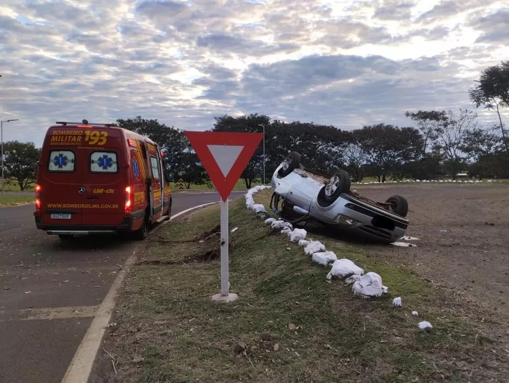 De acordo com relatos, o motorista perdeu o controle da direção ao adentrar a rotatória, o que fez com que o veículo capotasse, parando com as rodas para cima no canteiro central. Apesar do impacto, os ocupantes sofreram apenas ferimentos leves e conseguiram sair do carro antes da chegada das equipes de socorro.