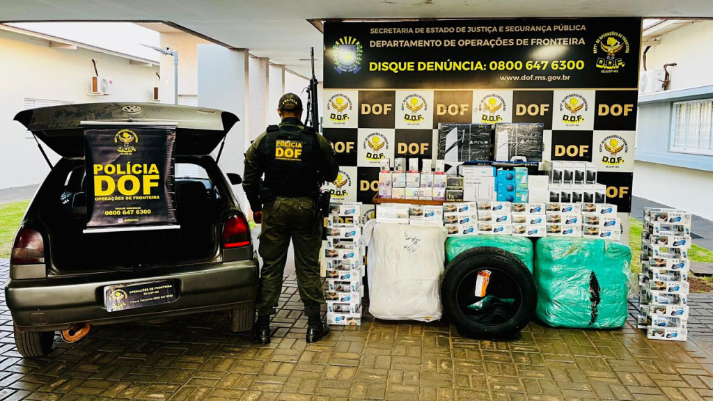 Homem de 33 anos e uma mulher de 46, foram flagrados por policiais do DOF (Departamento de Operações de Fronteira) transportando diversos materiais contrabandeados do Paraguai num veículo VW Gol, cinza, nesta terça-feira (3/6), na MS-164, em Maracaju.