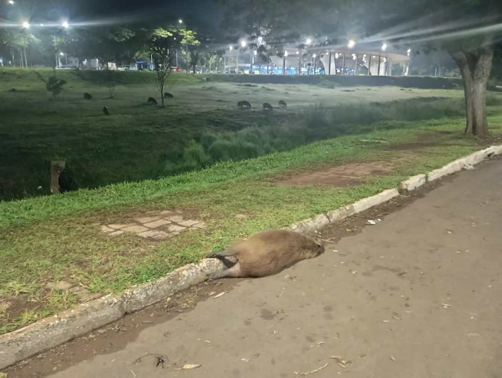 Na madrugada deste sábado (28), mais uma capivara foi brutalmente atropelada na Rua Presidente Kennedy, nos fundos da rodoviária de Dourados. A cena se repete como um roteiro trágico já conhecido — e ignorado. O animal, símbolo da cidade e do Mato Grosso do Sul, morreu na hora.