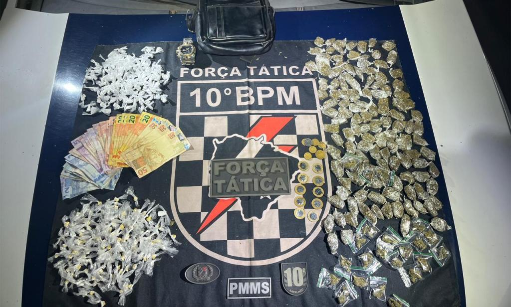 Segundo a polícia, equipe de Força Tática do 10 BPM abordou um homem conhecido como “Buguinho”. Ainda de acordo com a PM, ao realizar a busca pessoal, foi encontrado com ele uma quantidade de entorpecente e dinheiro. Ele confessou que a residência em que estava é utilizada como ponto de venda de drogas.