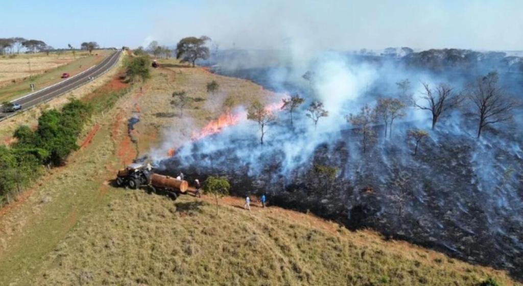 Um incêndio de grandes proporções atingiu a Fazenda Dois Irmãos, em Bataguassu, nesta sexta-feira (22). O fogo começou nas proximidades da rodovia MS-395 e, em poucos minutos, se espalhou pela propriedade rural.