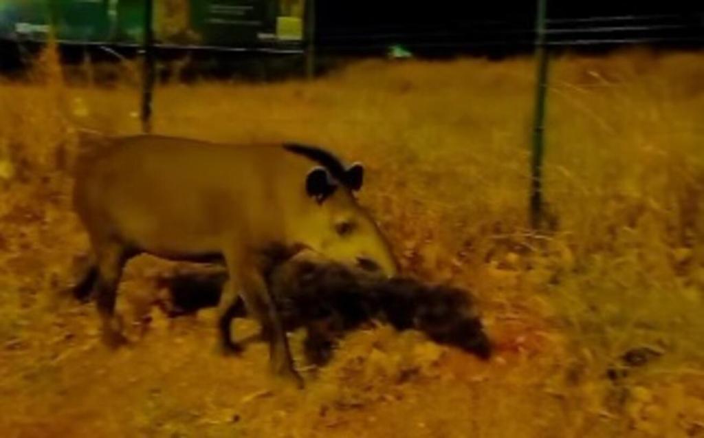 Maior mamífero terrestre do Brasil chamou atenção de quem passava pelo local na noite desta terça-feira