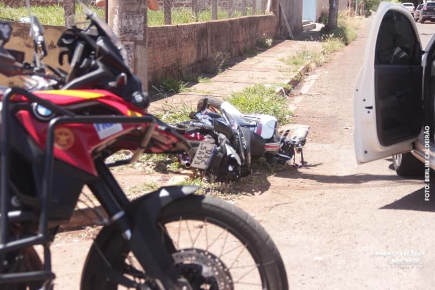 O piloto de uma motocicleta, de 23 anos, ficou gravemente ferido no início da tarde desta terça-feira (21), ao cruzar a preferencial e bater em um carro no cruzamento das ruas Generoso do Albuquerque com a Carlos Drummond de Andrade, no bairro Aero Rancho, em Campo Grande.