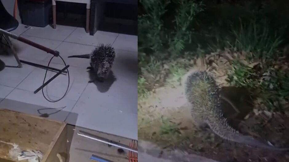 Um exemplar de porco-espinho (Coendou prehensilis) foi capturado após ser encontrado em uma casa no Bairro Nova Lima, em Campo Grande. O resgate aconteceu nesta segunda-feira (20).