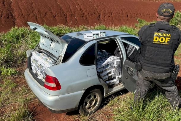 Policiais militares do Departamento de Operações de Fronteira (DOF) apreenderam, na segunda-feira (3), um veículo VW Polo carregado com mil pacotes de cigarros contrabandeados do Paraguai. A ação ocorreu na rodovia MS-278, na zona rural de Caarapó, e resultou na prisão em flagrante de um homem de 36 anos.