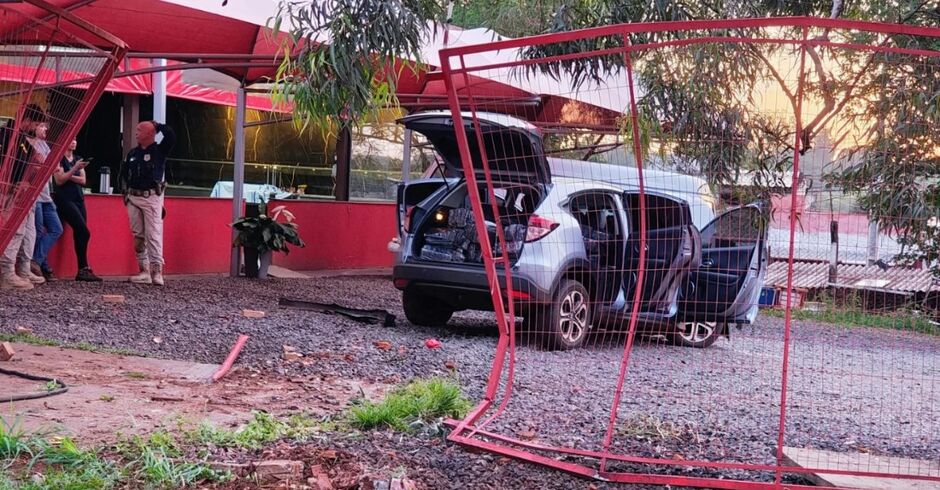 Imagens, divulgadas pela página do Instagram ‘Passeando em Campo Grande’, mostram a grade completamente destruída e o veículo, todo aberto, dentro do estabelecimento.