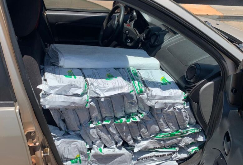 Durante patrulhamento na região de Amambai e Caarapó, os agentes localizaram um veículo Ford/Fiesta, transportando uma carga de 575 quilos de inseticida contrabandeado do Paraguai.