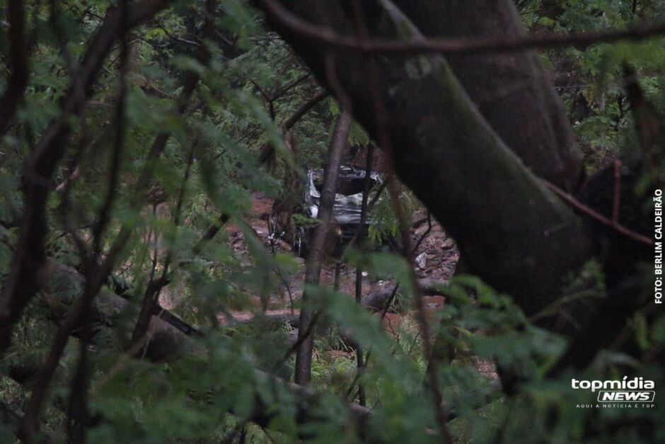 O carro só parou aproximadamente 300 metros abaixo do ponto onde foi levado. Equipes de socorro e um guincho estão no local nesta sexta-feira (14), trabalhando para remover o veículo com segurança, em meio ao nível ainda bastante elevado do córrego, que já arrastou parte da grade de proteção e da vegetação.