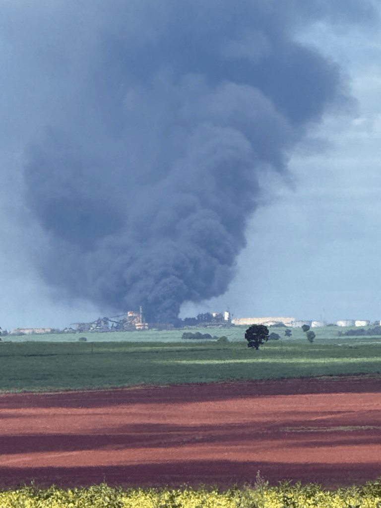 Quem passava pela MS-156, na altura do km 12, na manhã desta terça-feira, foi surpreendido por uma densa fumaça escura que podia ser vista a longa distância. As imagens rapidamente circularam nas redes sociais e despertaram preocupação em moradores e motoristas que transitavam pela região. O foco do incêndio estava na Usina Raízen, em Caarapó, unidade voltada à produção de etanol.