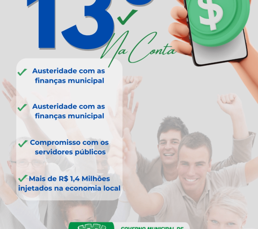 A Prefeitura de Juti realizou nesta terça-feira, 10 de dezembro, o depósito integral do 13º salário dos servidores municipais. A medida coloca em circulação mais de R$ 1,4 milhão no comércio local, reforçando o fluxo econômico neste período decisivo de fim de ano. A iniciativa reflete um planejamento financeiro rigoroso e alinhado às diretrizes de responsabilidade fiscal adotadas pela gestão municipal. O pagamento em dia … Continuar lendo Prefeitura de Juti antecipa pagamento do 13º salário e injeta mais de R$ 1,4 milhão na economia local